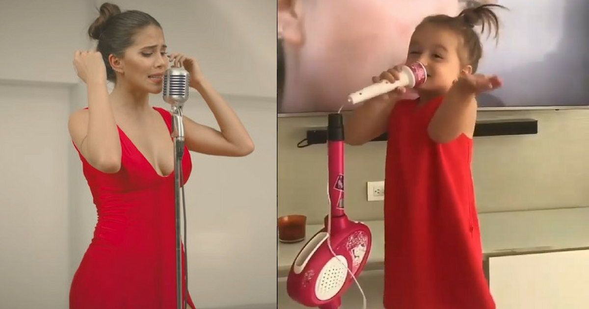 Logrando imitar su ultimo sencillo y éxito ‘Ya para que’, esta pequeña logra enamorar a todas las redes sociales, ya que usa un vestido muy similar al que la artista usa en el videoclip, también con su cabello recogido y de fondo el video de Greicy, es como logra ser viral por todo lado.