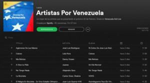 La aplicación multiplataforma especializada en la reproducción de música “streaming”, mostro su apoyo hacia Venezuela, Spotify decidió crear una playlist con todos los artistas que se presentaron en el ‘Venezuela Aid Live’.