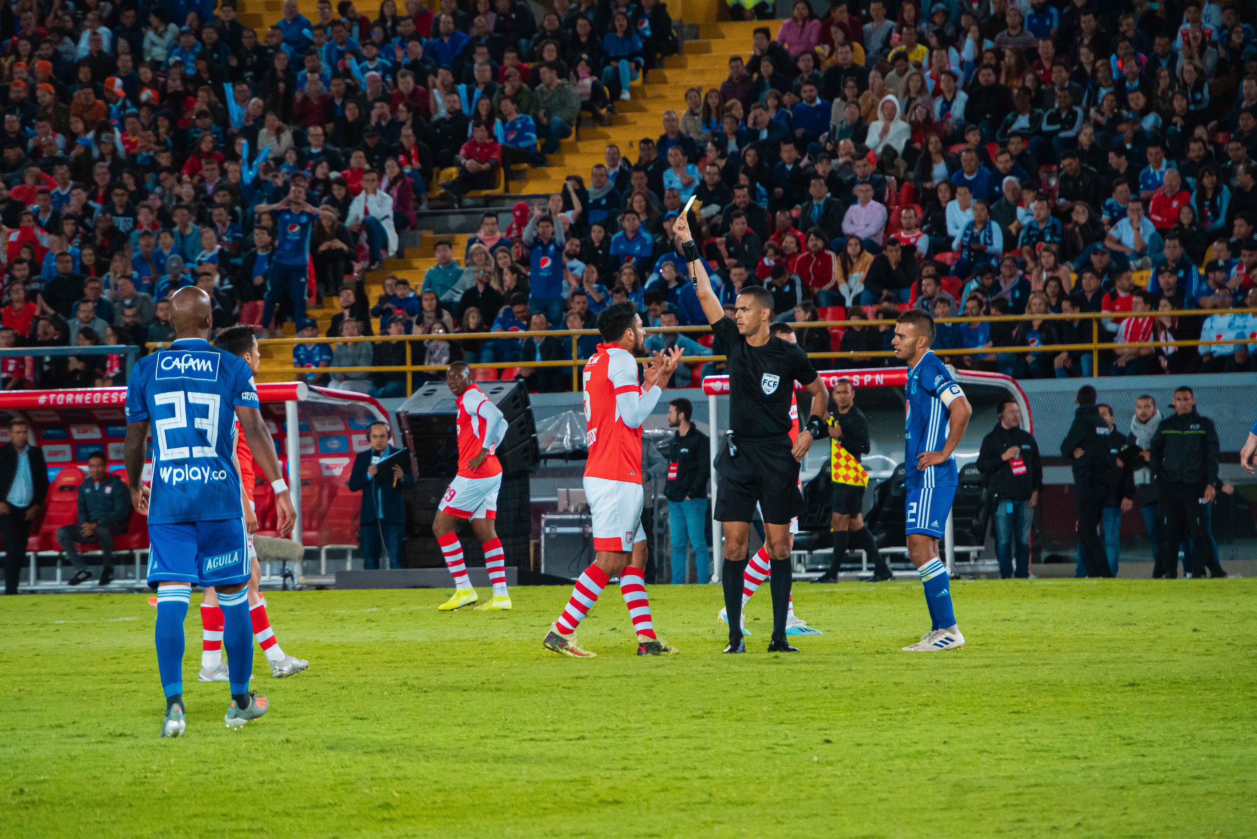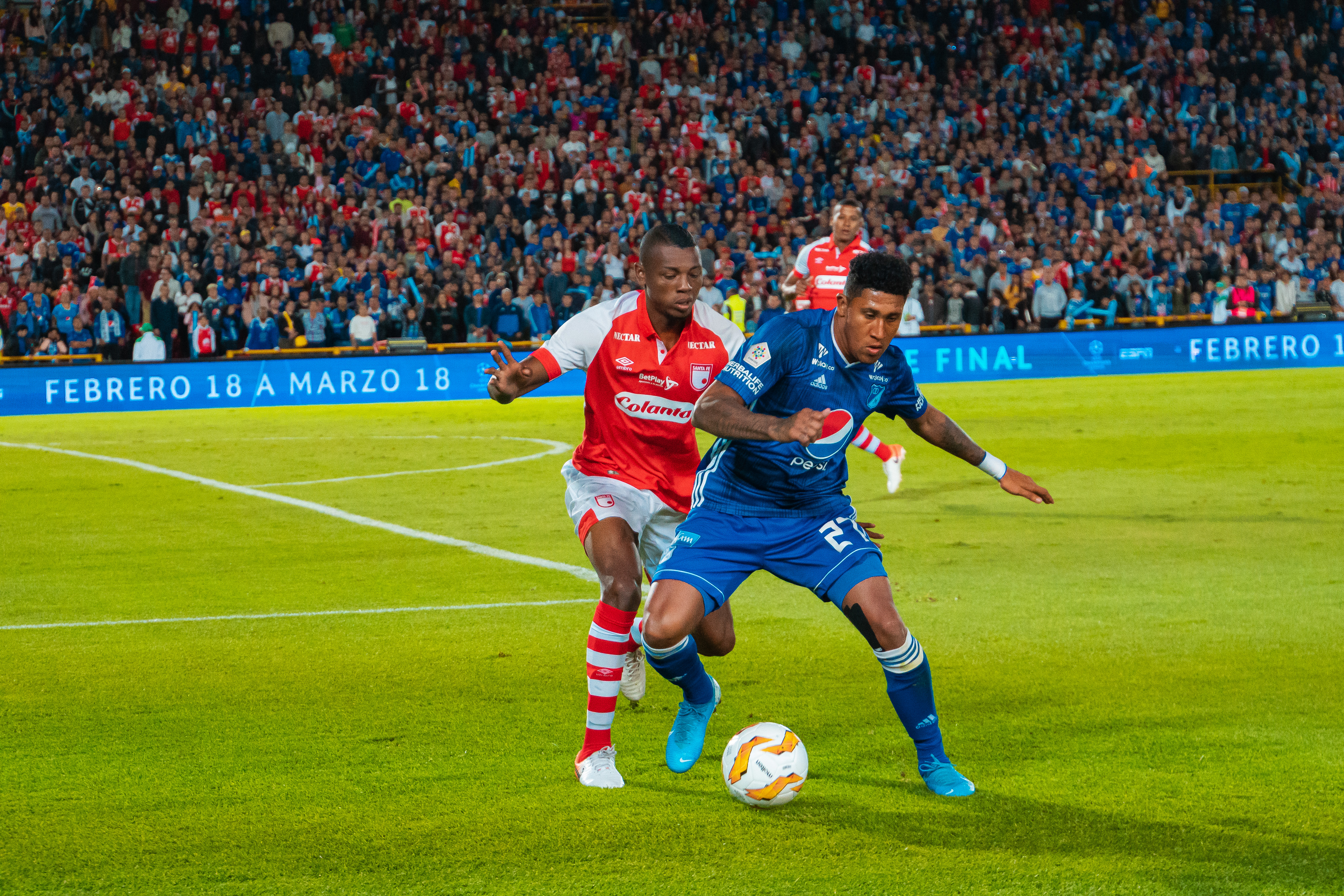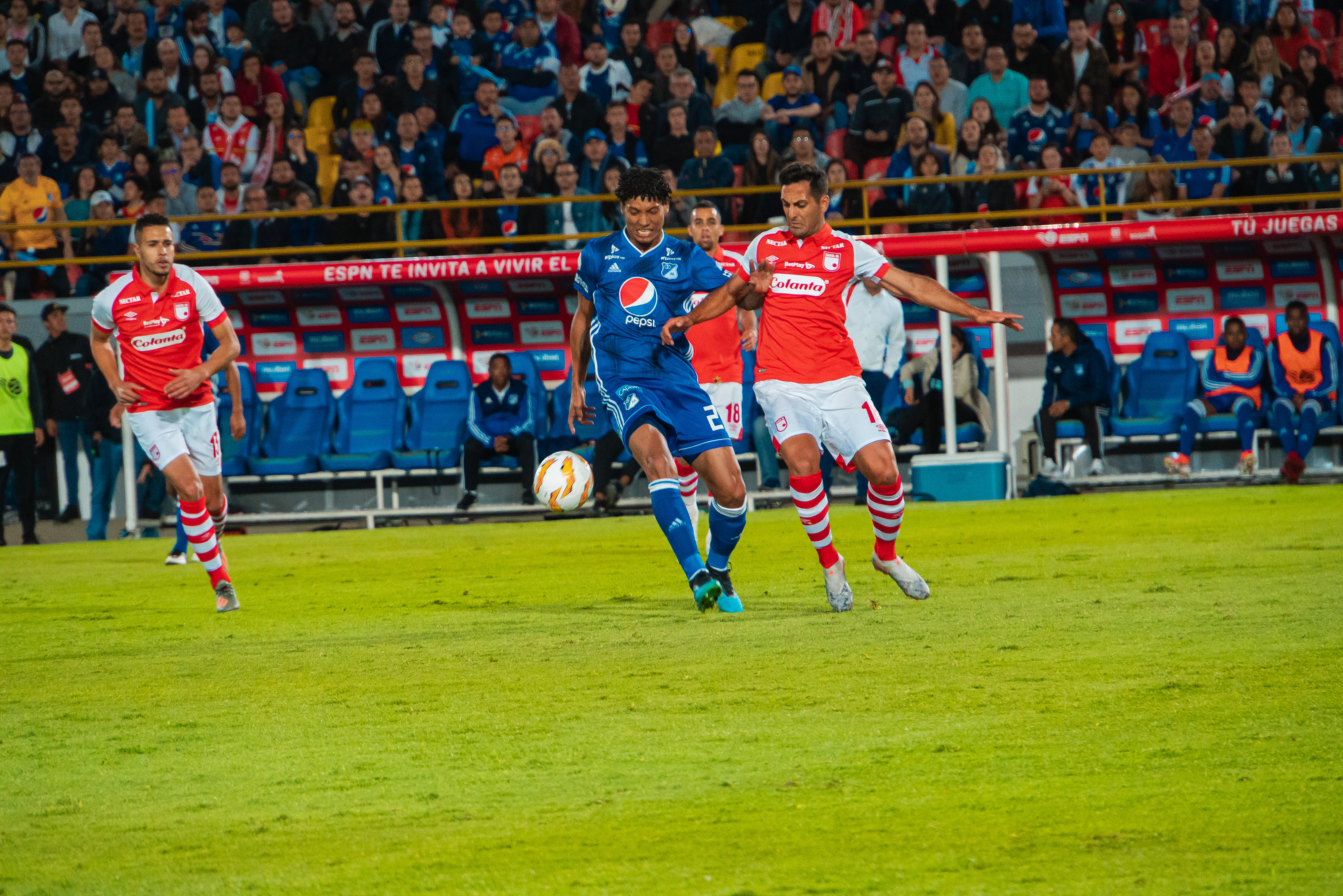 y Santa Fe disputaron el primer clásico bogotano del 2020 con miras a la tercera jornada del Torneo ESPN que se realiza en Bogotá en el Campín. Ante 25.363 espectadores, una fiesta en las tribunas con aficionados de los dos conjuntos saltaron al terreno de juego los protagonistas. Embajadores y cardenales se siguen poniendo a punto de cara a la temporada oficial que está por arrancar.