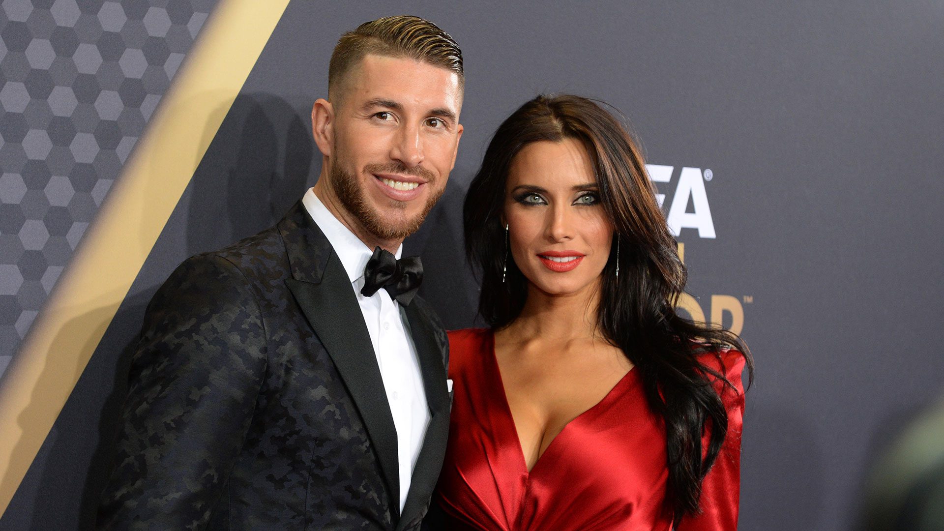 Zurich, Switzerland. 11th Jan, 2016. Soccer player of Real Madrid Sergio Ramos (L) and his girlfriend Pilar Rubio arrive to the FIFA Ballon d'Or Gala 2015 held at the Kongresshaus in Zurich, Switzerland, 11 January 2016. Photo: Patrick Seeger/dpa/Alamy Live News
