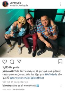 En una publicación de Instagram, él comento: ‘Hola terrícolas, no sé porque nos quieren casar pero mujeres, solo les digo que #NoTodavía si o que? @KennyManOficial @Laloebratt’ haciéndole alusión a su nuevo sencillo, en el que surgieron varios comentarios de sus fans apoyándolo en este nuevo proyecto.